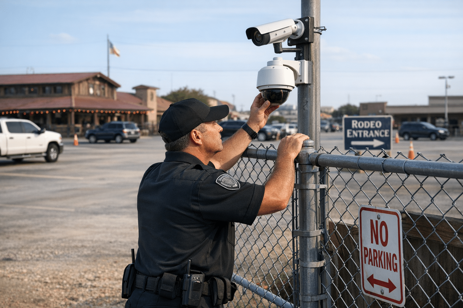 Professional security guards provide immediate response capability and visible deterrence during high-traffic rodeo periods. Strategic deployment maximizes protection while maintaining cost efficiency.
